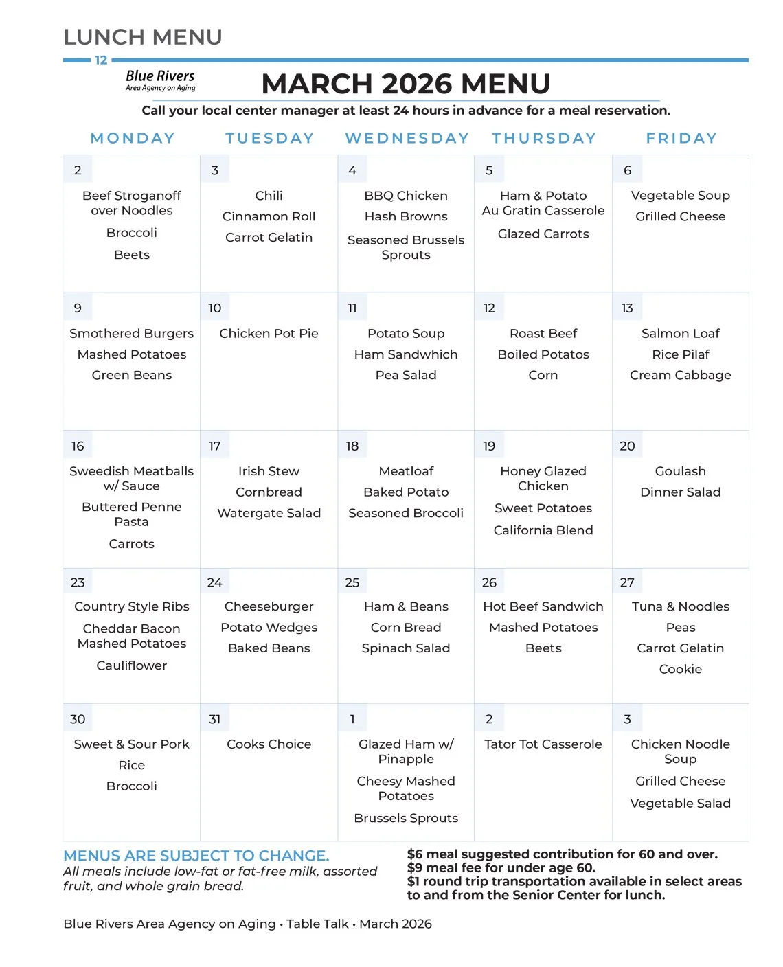 LUNCH MENU